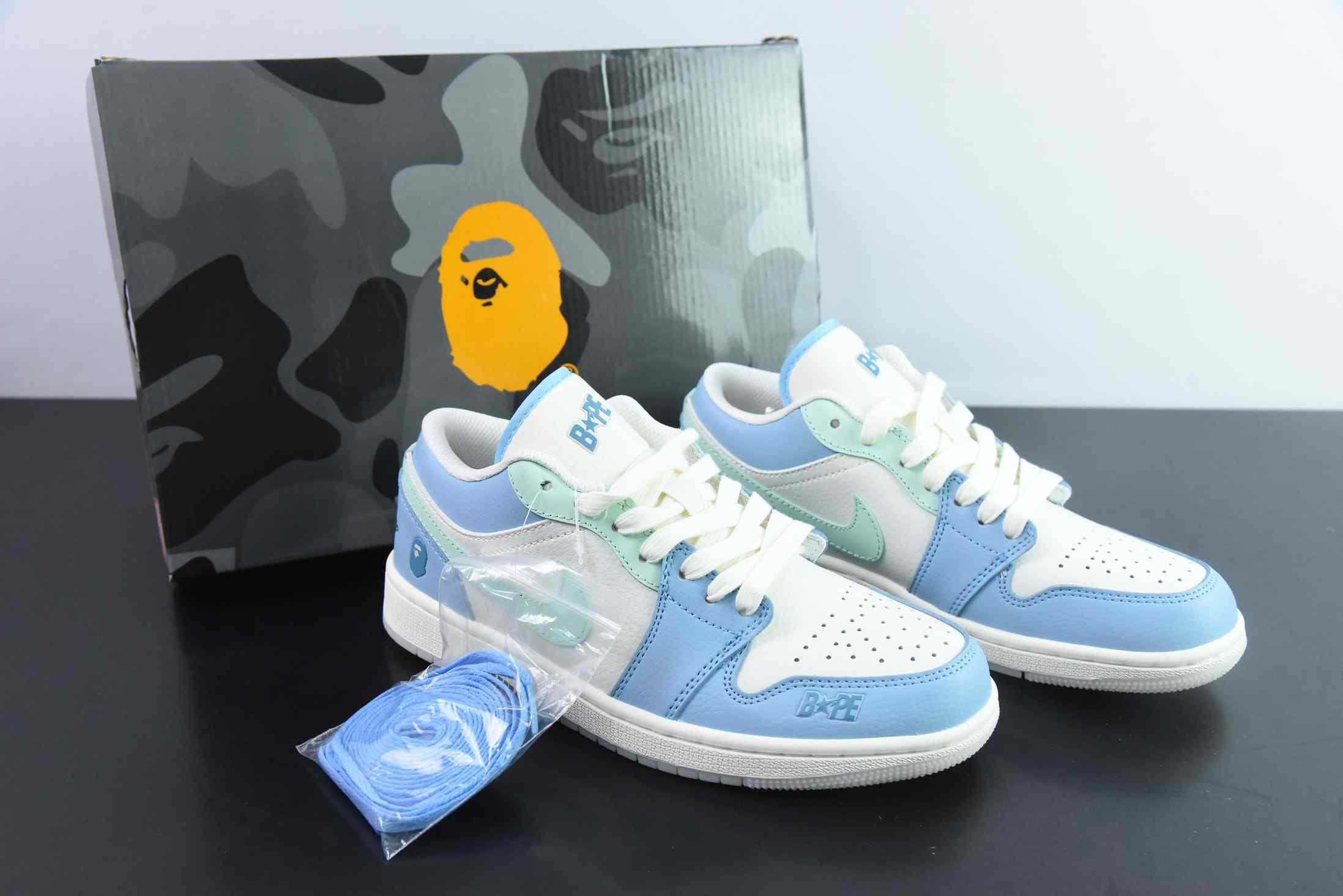 XFWQ35428449 Nike Air Jordan 1 Retro x BAPE Cream Blue Green JJ8688 006